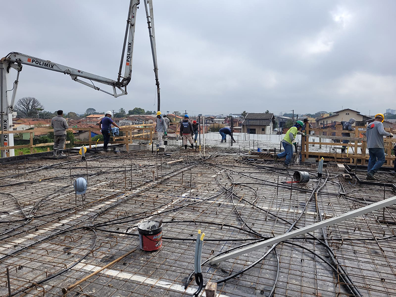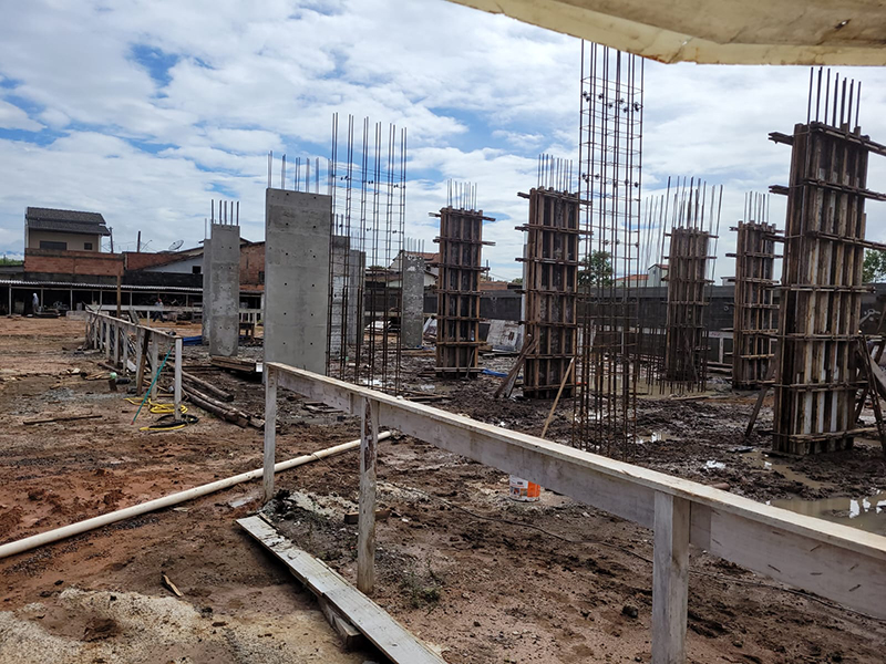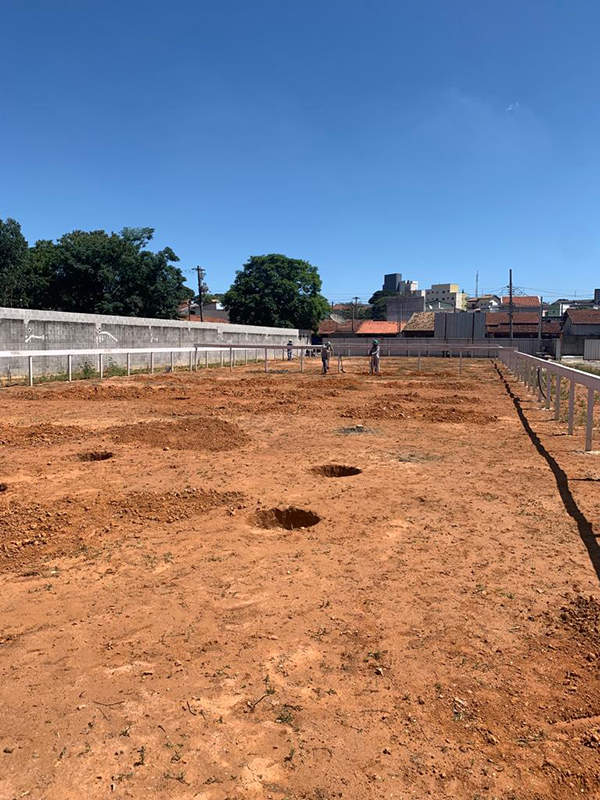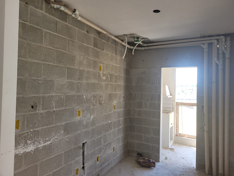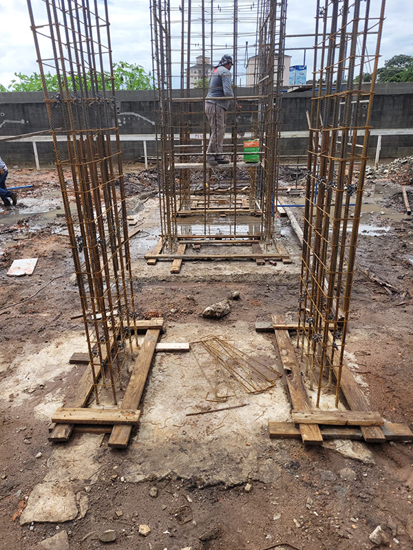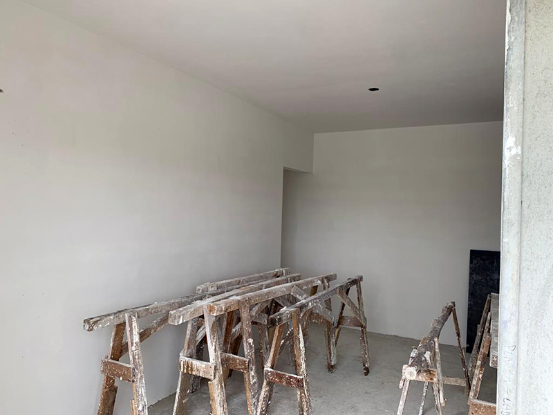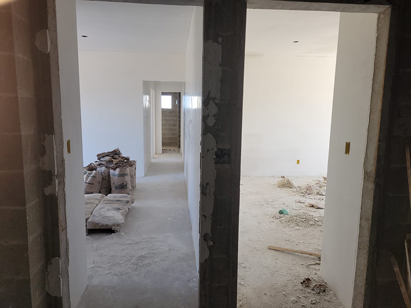 Finalizando Gesso Liso nas Escadas e Halls; Executando Telhado; Iniciando Fundação da Piscina na Área Externa e Muro da Divisão dos Terrenos. |