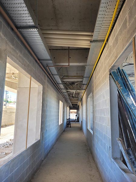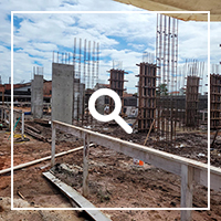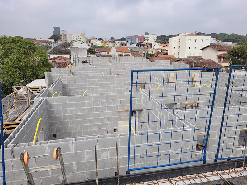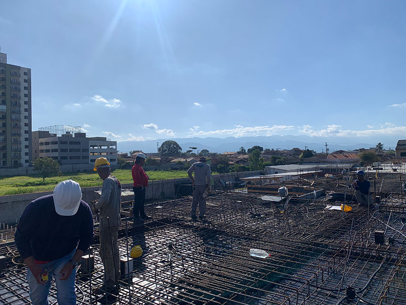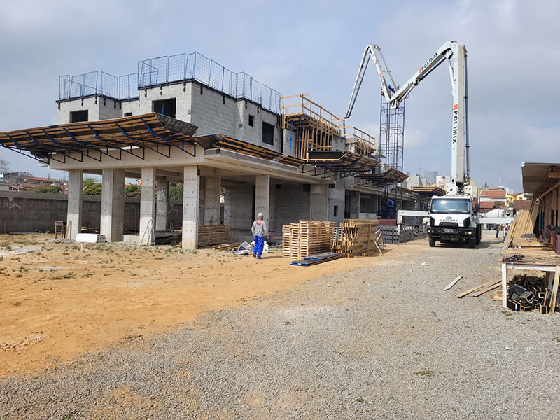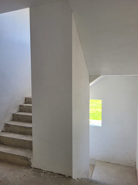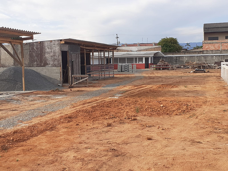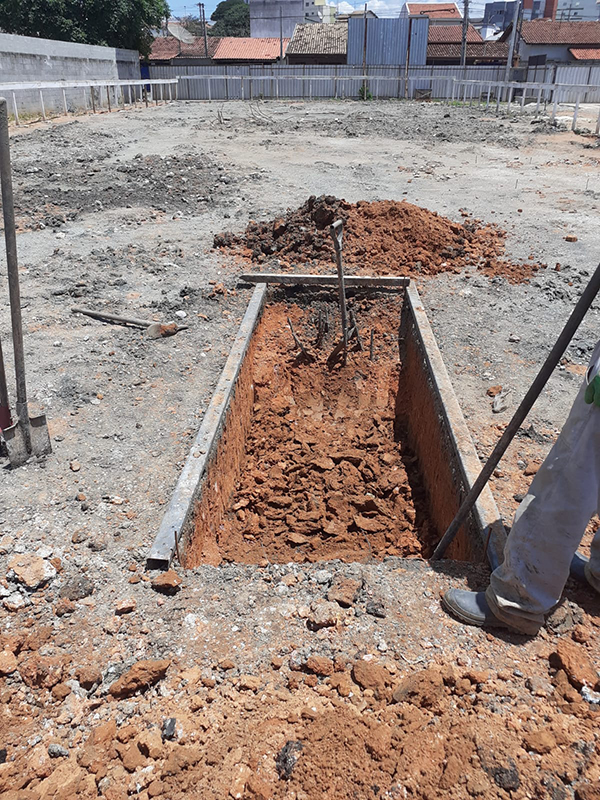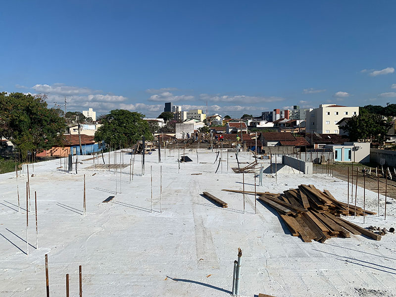 Finalizando Gesso Liso nas Escadas e Halls; Executando Telhado; Iniciando Fundação da Piscina na Área Externa e Muro da Divisão dos Terrenos. |
